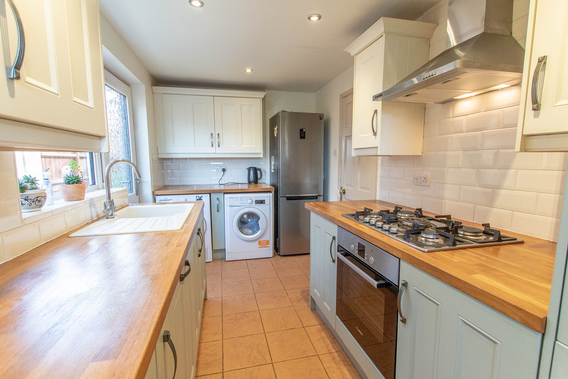 Upstairs, there are two further bedrooms along with a separate bathroom. Please note that the upstairs ceiling height is slightly lower than average, measuring around 1.8 metres so it may not be suitable for very tall occupants. The property has been redecorated and new carpets have been fitted.